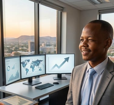 Innocent Tautona (33), the architect and driving force behind LIQUIDMONT, brings an exceptional fusion of macroeconomic mastery, trading innovation, and institutional-level insight to the firm. Backed by a BSc (Hons) in Applied Business Computing from the University of Sunderland and reinforced by a vast ecosystem of accredited and non-accredited financial training, Tautona stands as one of the few traders whose development is both academically grounded and professionally evolved.