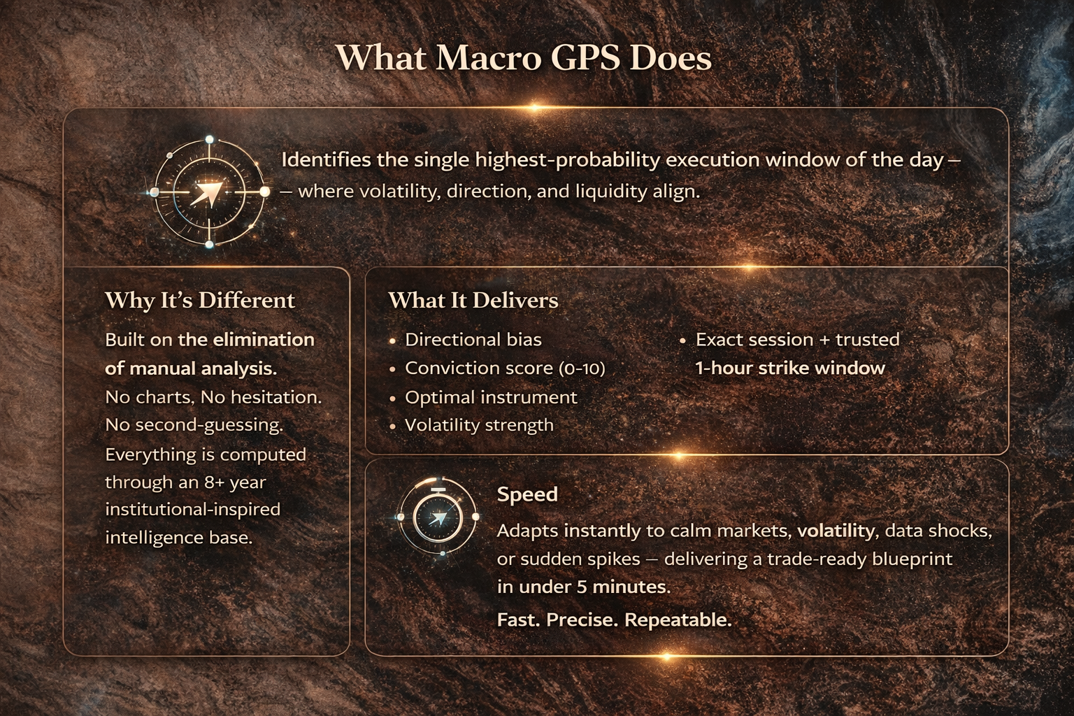 Absolutely. If you can copy-paste and read a clock, you can use it. Each prompt returns plain-English instructions: “Risk-Off 1, Long Gold, 13:35 GMT, 9/10 conviction.”