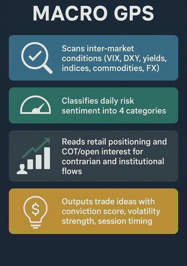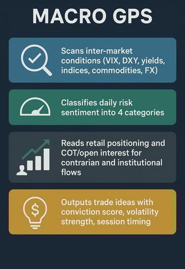 using the most recent macro context in play.HOW FAST IT WORKS- Whether the market is calm, volatile, or reacting to fresh data, leaks, shocks, or sudden spikes — the Macro GPS adapts instantly.