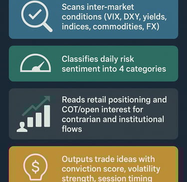 Absolutely. If you can copy-paste and read a clock, you can use it. Each prompt returns plain-English instructions: “Risk-Off 1, Long Gold, 13:35 GMT, 9/10 conviction.”